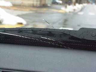 パキッ!!!!ワイパーの鉄部分がフロントガラスにあたってひびがはいってしまいました。